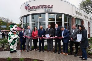 Rainy weather didn’t stop a big crowd from gathering outside the newest location for Cornerstone Bank. The ribbon-cutting event at 1125 Pleasant Street in Worcester’s Tatnuck Square marked the successful opening of Cornerstone’s 12th location and included the unveiling of an original sculpture by a popular local artist.